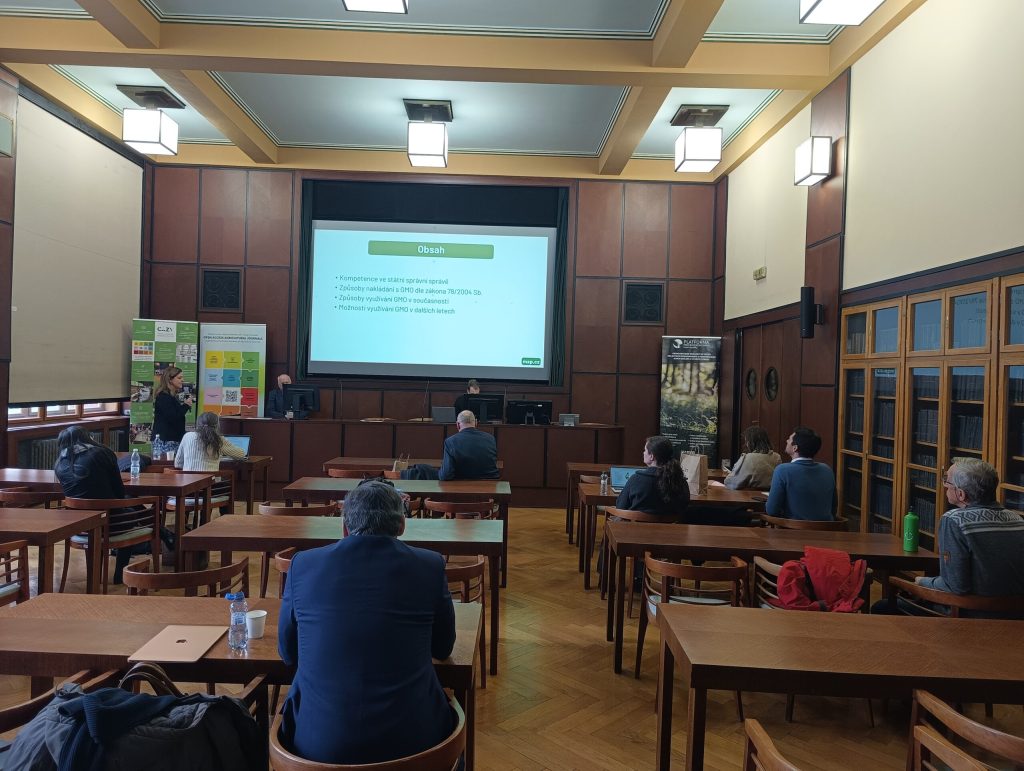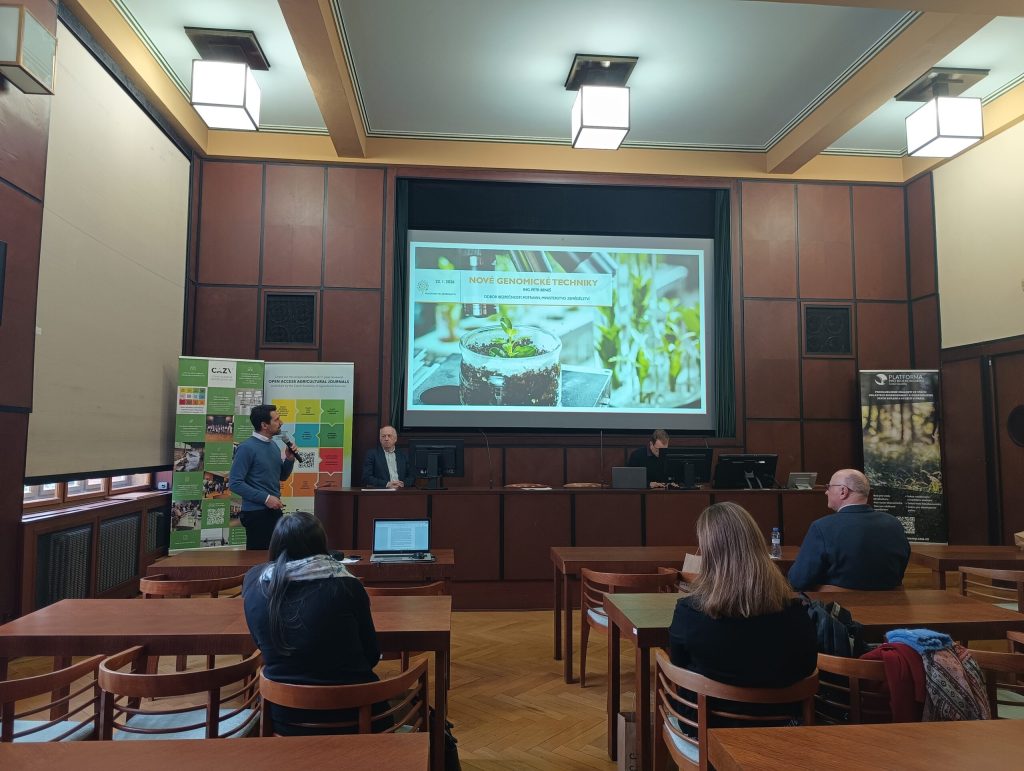 První přednášku na téma „Podstata a průběh projednávání návrhu nařízení o nových genomických technikách“ přednesl prof. RNDr. Ivo Frébort, CSc., Ph.D. Na něj navázal Ing. Petr Beneš s přednáškou „Perspektiva plodin vytvořených novými technikami a jejich plánované rozdělení na NGT1 a NGT2“. Problematiku využívání geneticky modifikovaných organismů v České republice z pohledu Ministerstva životního prostředí představila Ing. Hana Jiráková, Ph.D.